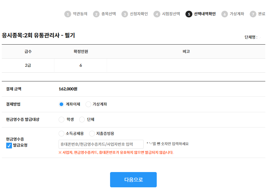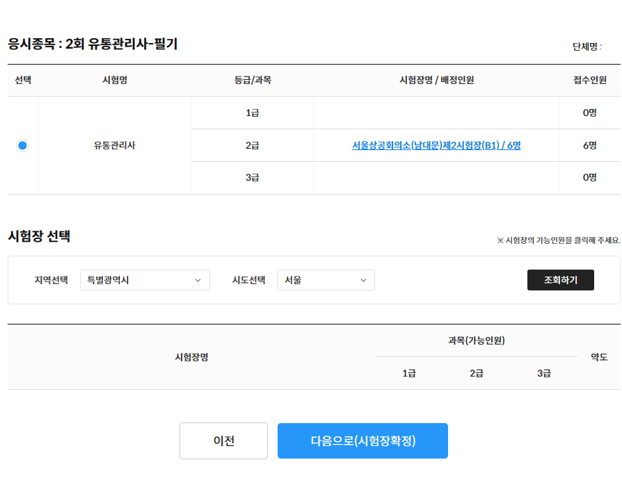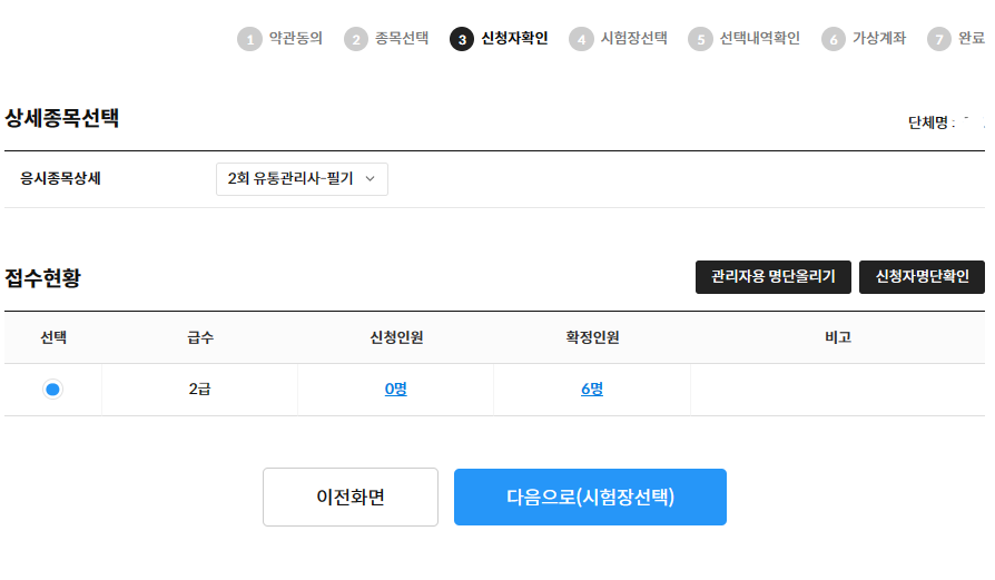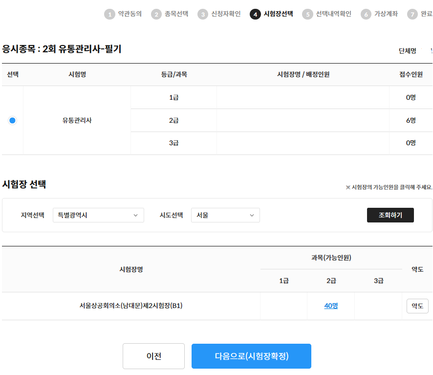 È®Á¤ÀοøÀ» È®ÀÎÇϽŠÈÄ [´ÙÀ½À¸·Î(½ÃÇèÀå ¼±ÅÃ)] ¹öưÀ» Ŭ¸¯ÇÕ´Ï´Ù. 6. ½ÃÇèÀå ¼±ÅÃ
