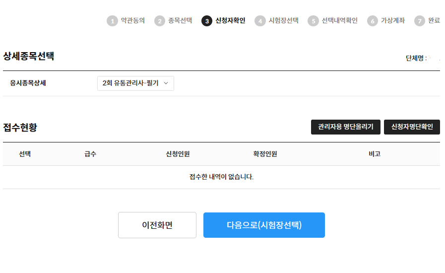 ½ÃÇèÀå¸í / ¹èÁ¤ÀοøÀ» È®ÀÎ ÈÄ [´ÙÀ½À¸·Î(½ÃÇèÀå È®Á¤)] ¹öưÀ» Ŭ¸¯ÇÕ´Ï´Ù. 7. ¼±Å󻿪ȮÀÎ