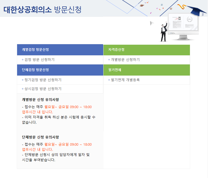 ´Üü´ã´çÀÚ´Â ´ëÇÑ»ó°øÈ¸ÀÇ¼Ò ÀÚ°ÝÆò°¡»ç¾÷´Ü ÆäÀÌÁö¿¡¼ ´Üü ȸ¿ø°¡ÀÔ ÇϽñ⠹ٶø´Ï´Ù. Á¢¼öÀÚ ¶ÇÇÑ °¡ÀÔµÈ È¸¿ø¸¸ Á¢¼ö °¡´ÉÇÕ´Ï´Ù. 1. ÀÀ½ÃÇÒ »ó°øÈ¸ÀǼҿ¡ ¹æ¹®ÇÏ¿© ºñÄ¡µÈ ÄÄÇ»ÅÍ¿¡¼ [Á¤±â/»ó½Ã°ËÁ¤ ¹æ¹® ½ÅûÇϱâ] Ŭ¸¯
