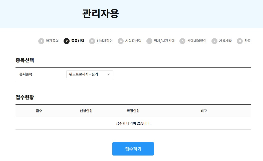 ÀÀ½ÃÇÒ Á¾¸ñÀ» ¼±ÅÃÇÑ ÈÄ [Á¢¼öÇϱâ] ¹öưÀ» Ŭ¸¯ÇÕ´Ï´Ù. 4. °ü¸®ÀÚ¿ë ¸í´Ü ¿Ã¸®±â